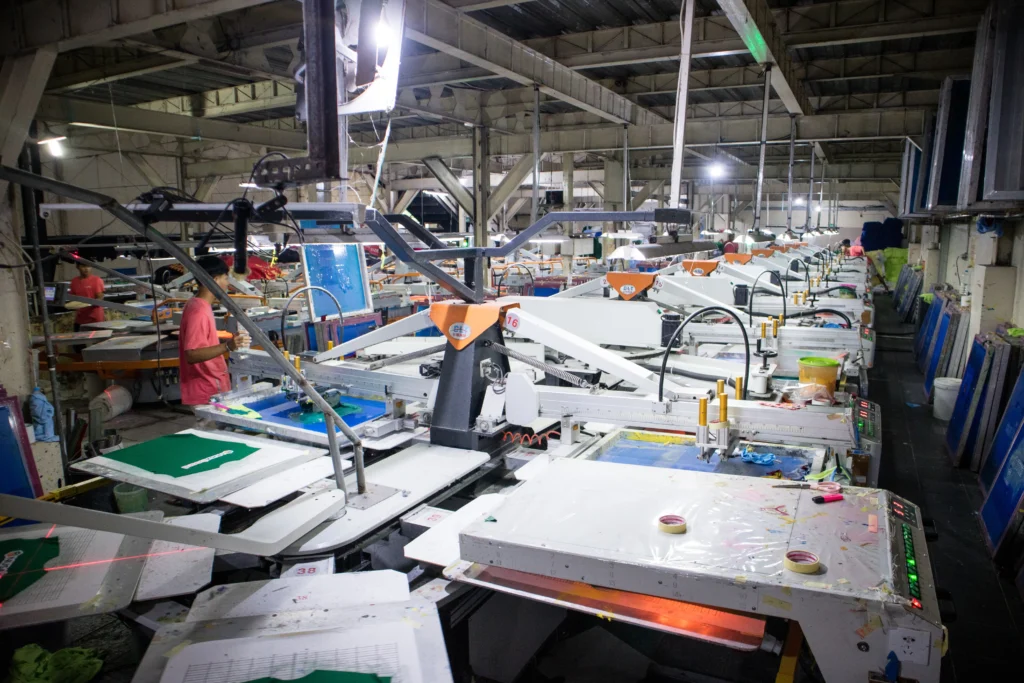 Dengan teknologi sablon plastisol, rubber, hingga DTF printing full color, hasil desain lebih tajam, awet, dan tidak mudah luntur. Cocok untuk branding perusahaan yang ingin tampil profesional. - Kapasitas Produksi Massal