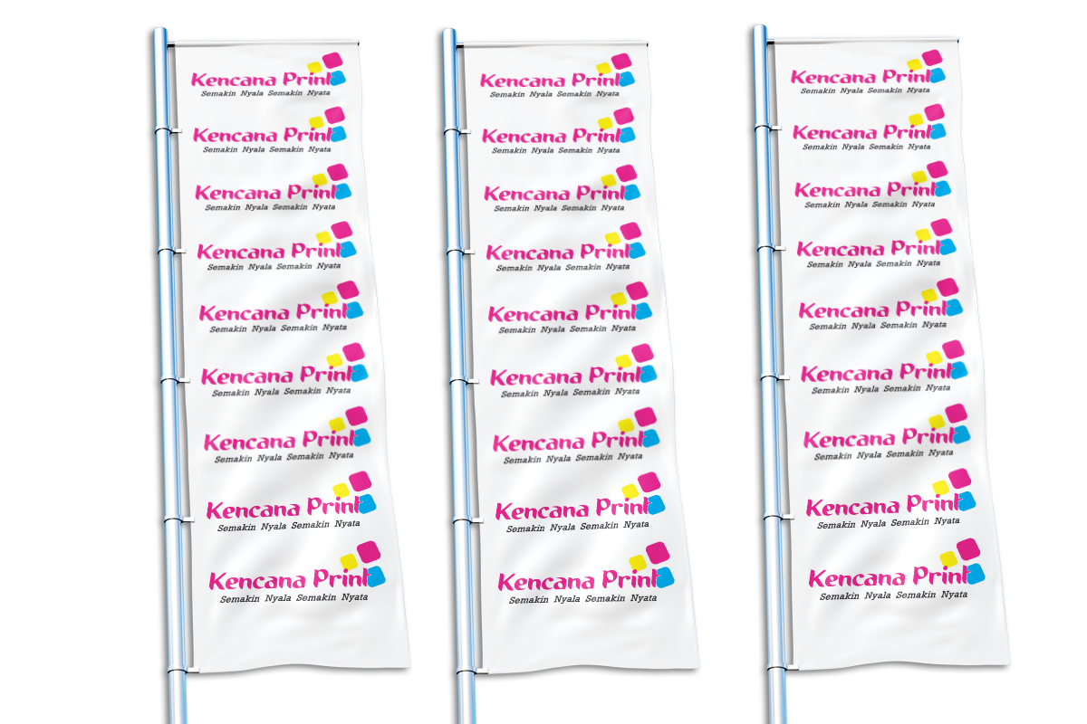 - Umbul-Umbul : Umbul-umbul adalah bendera yang memiliki berbagi macam warna dan varian, dengan ciri terpajang memanjang secara horisontal atau vertikal dengan bagian runcing pada ujung bendera. Pada umumnya bendera jenis umbul-umbul ini terpasang di tempat strategis yang dapat dilihat banyak orang. Fungsi umbul-umbul sebagai reklame media promosi iklan dan branding suatu produk, perusahaan dan instansi. Kencana Print bisa memproduksi umbul-umbul dengan dua macam pilihan proses cetak Umbul umbul Kain Manual Sablon dan Umbul umbul Kain Printing.